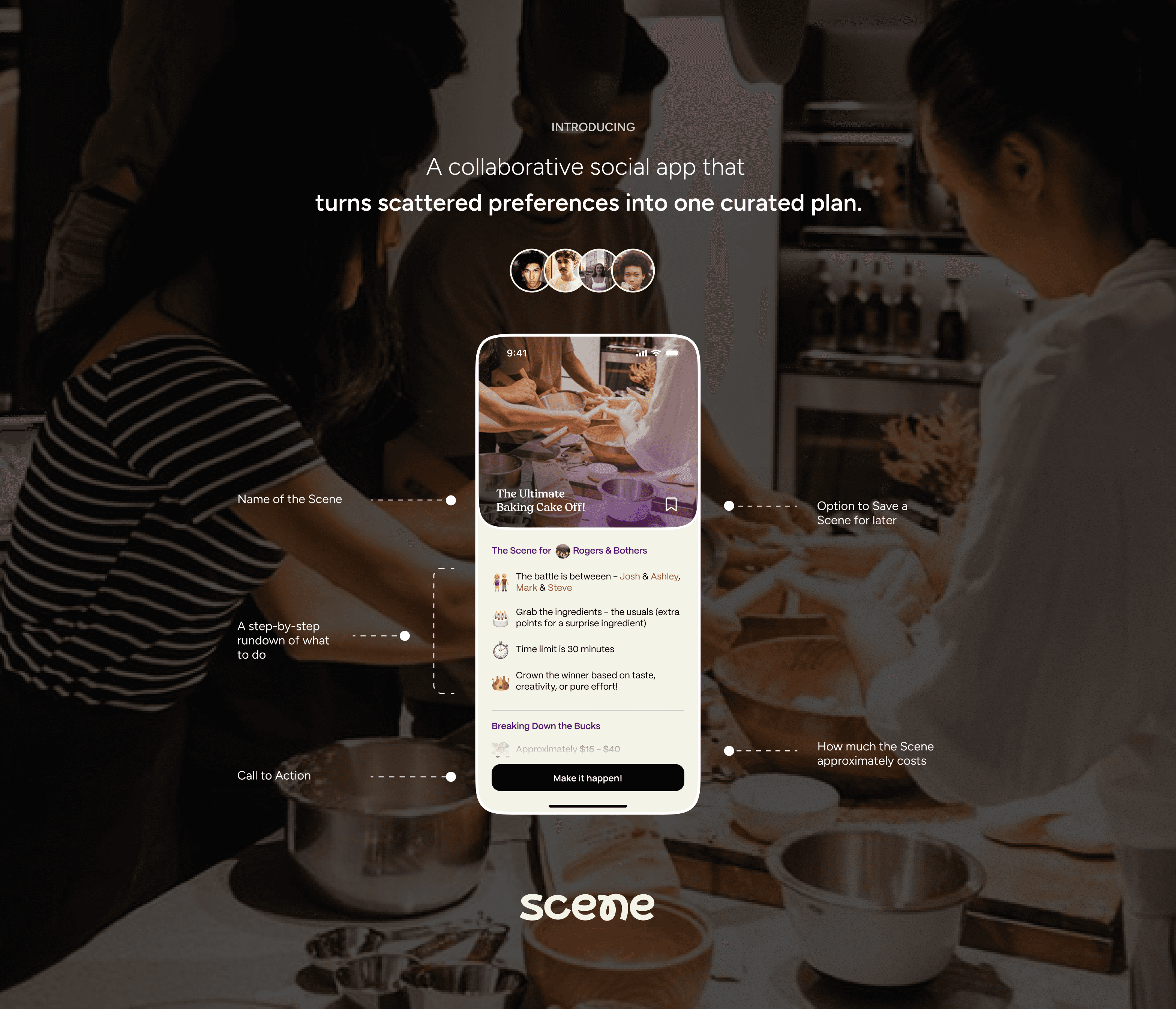 Designed for in-person interactions, Scene solves for that narrow yet powerful moment: when people are already together, but don’t know what to do.